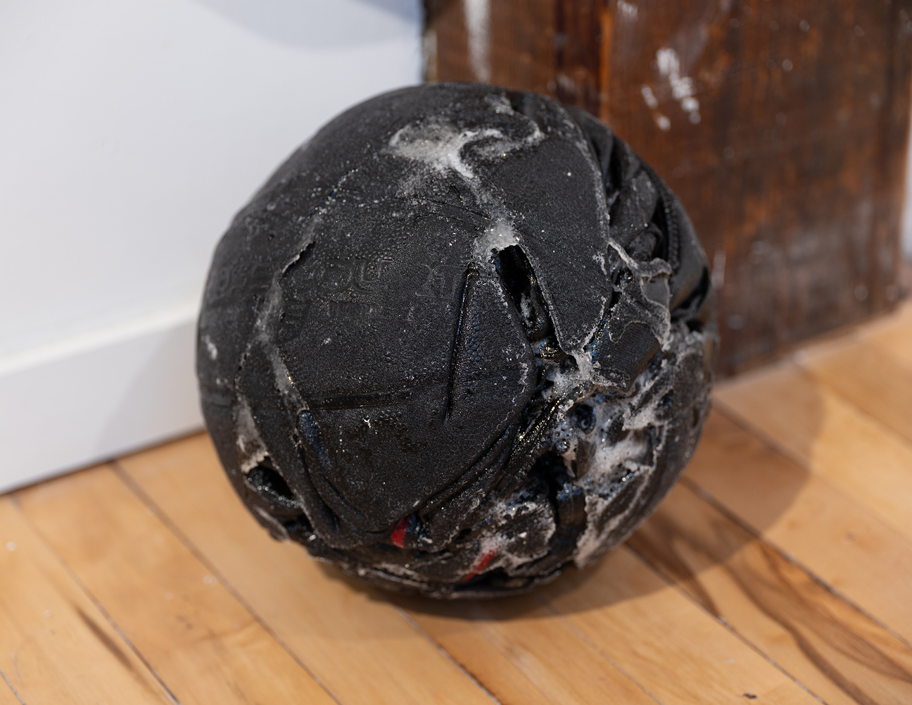 FLOATERS marks Seo’s new attempt to explore the tension between anxiety and freedom, by presenting an installation that continues the artist’s experiments with deconstruction and reconstruction of materiality. Seo’s approach to materials like clothing went beyond attire, serving as a reflection of individuality, adaptable second skin, protective barrier, and accessible commodity. Crafting different forms in his work visually represented his personal journey through psychological transformation amid a complex environment. The artist’s encounter with a different system prompted identity exploration, leading to a transformative journey of shredding and bleaching personal clothing, evoking conflicting emotions of liberation and anxiety. The reformed garments assumed prominence in Seo’s installation, symbolizing a state of transition and emerging structure amidst susceptibility to surroundings.