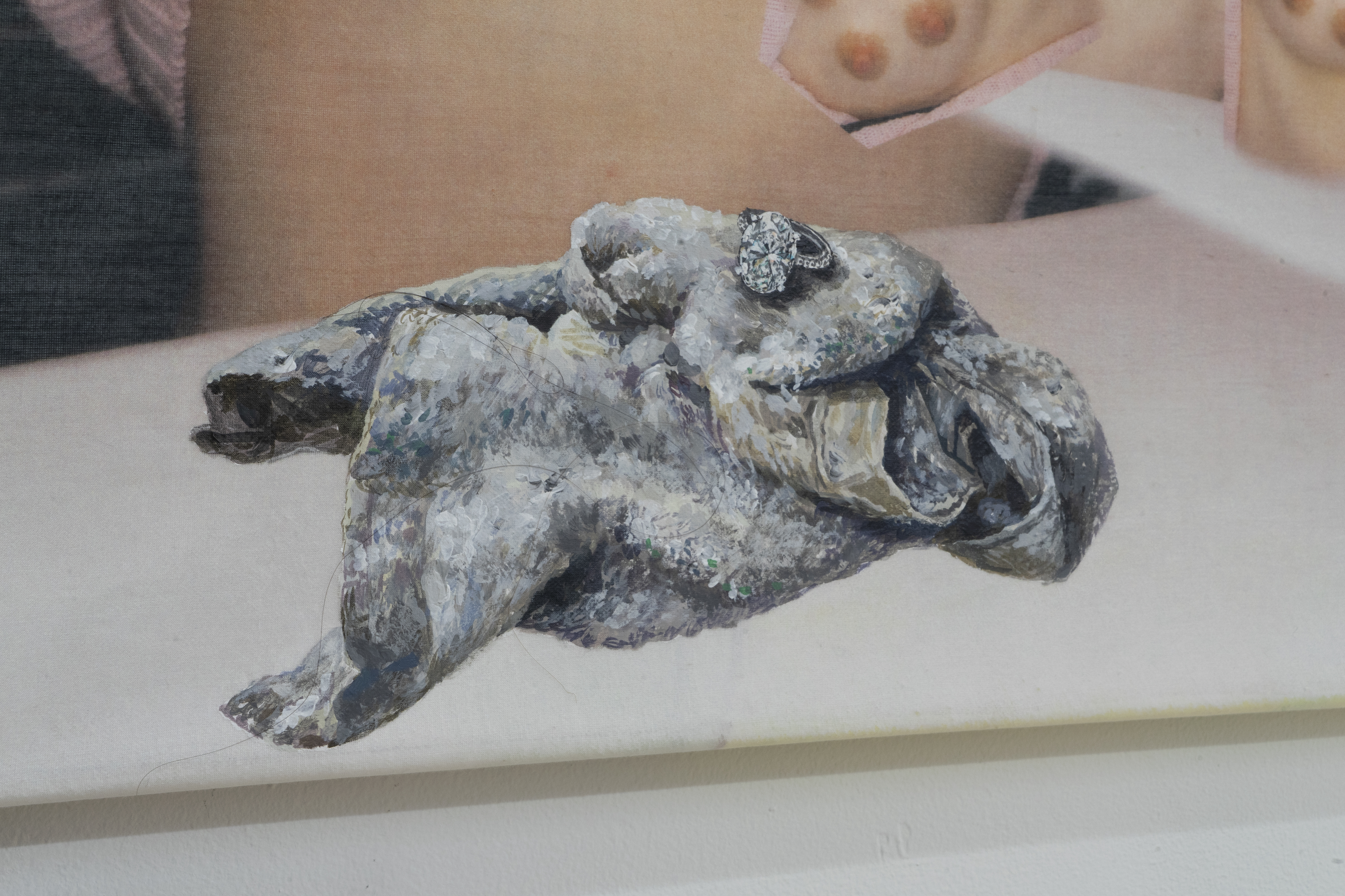 Will You Marry Me? does not merely invite the viewer to reconsider women’s bodies or their visual representations; it actively destabilizes the frameworks through which they are perceived. What if breasts and nipples could refuse their cultural scripts—slipping out of the grasp of beauty, desire, or shame—and become instead absurd, playful, even cartoonish: easy to laugh at yet discomfiting to truly see? In this space of disassembly and resistance, Oh’s compositions offer no straightforward resolutions; they refuse to resolve, to cohere, or to be consumed. Instead, they compel us to grapple with their refusal, asking: what if bodies could be liberated not just from objectification, but from the very need to make sense at all?